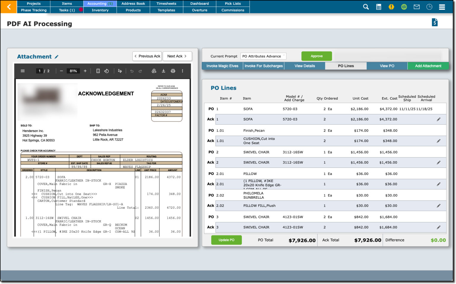 - Vendor Acknowledgment – This tool reduces the time required to reconcile vendor acknowledgments, and sales orders, to purchase orders.