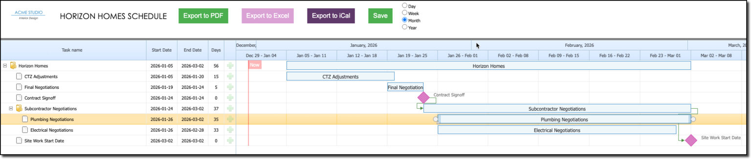Create and share Gantt Charts with clients and colleagues.