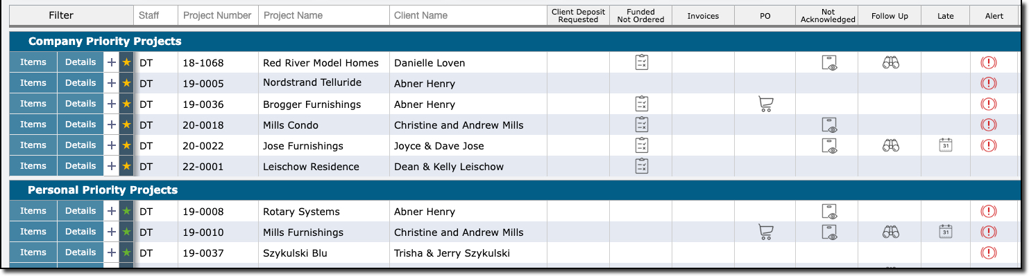 The Project Dashboard makes it easy to know which of your projects need attention.