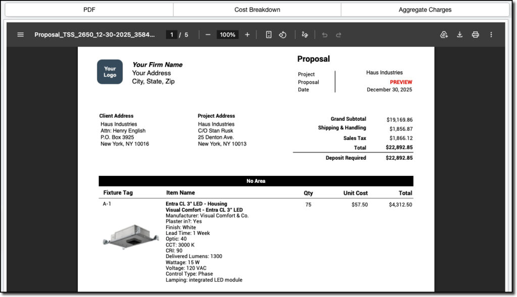 This is a proposal format that was requested by an HFS client who specifies and sells lighting fixtures.